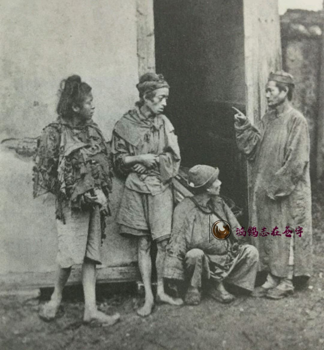 讨饭的乞丐,看着穿着就知道生活有多艰难,三人正遭到乡绅的训斥。