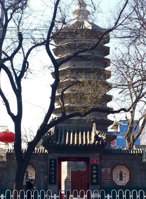 早在元代《析津志》就有文字记载,称它为“羊市塔”,注明是“砖”。证明元代时,此塔还在羊市内,旁边很可能尚未形成砖塔胡同。