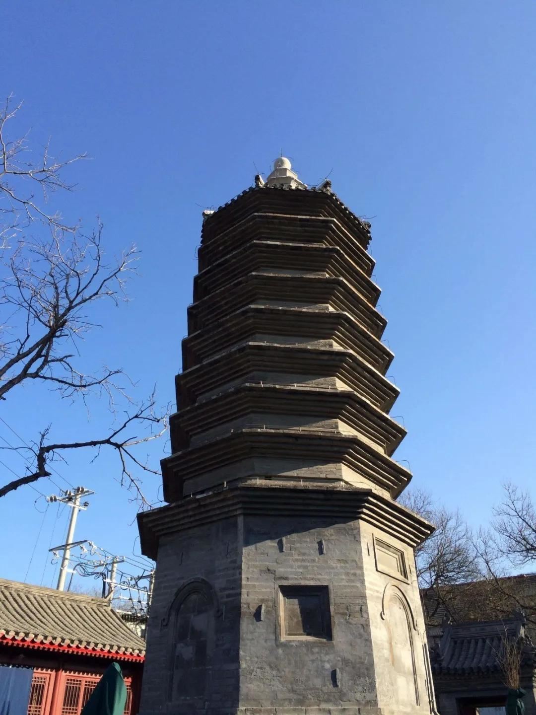 它是一座原七级后加高到九级的密檐砖塔,是仅存到今天的坐落在市区的惟一的一座砖塔。