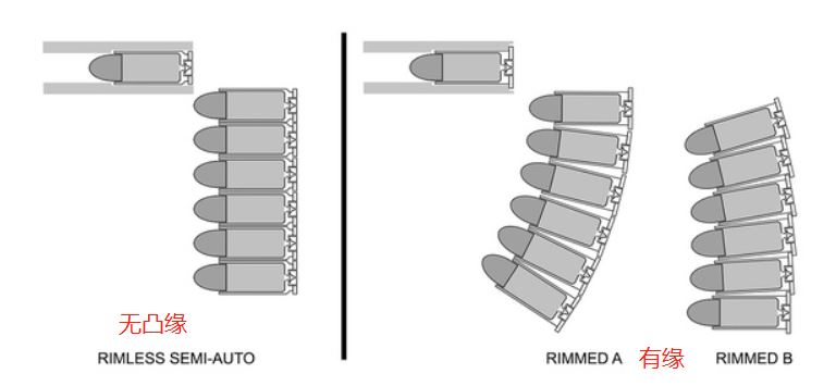 所以说,霰弹这种有缘弹并不适合弹匣装填,而管式弹仓对凸缘没问题。