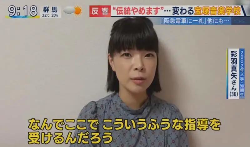 对于这种制度,也并不是所有学生都能接受,宝冢歌剧团的前团员彩羽真矢表示:「我当时总是问自己,为什么我必须接受这种指导。」