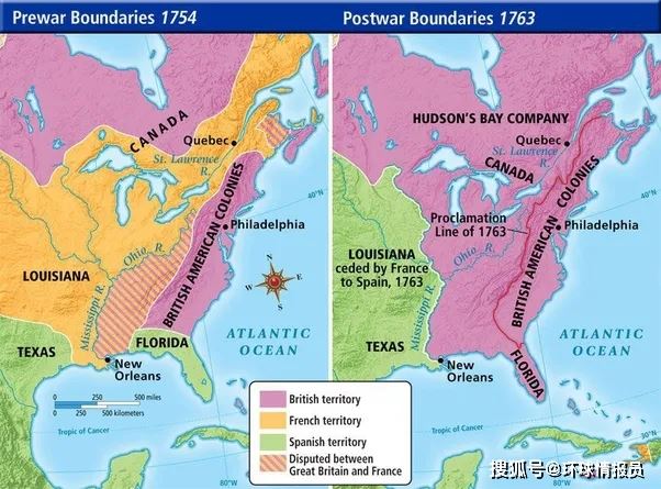 1756年,为了争夺北美的殖民霸权,英法爆发了七年战争,以英国的胜利而告终。《巴黎条约》中,法国把苦心经营的“新法兰西”割让给英国。
