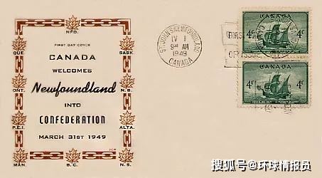 ▲1948年,加拿大邮政发行“欢迎纽芬兰入加”邮票