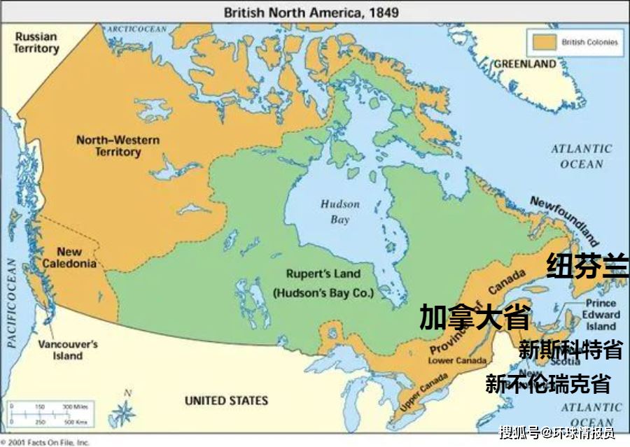 为了方便管理庞大的殖民地,英国将北美划分成十三殖民地(美国前身)、加拿大省、纽芬兰、新不伦瑞克省、新斯科舍省、罗伯特领地(哈德逊公司)等多个殖民地域进行管理。