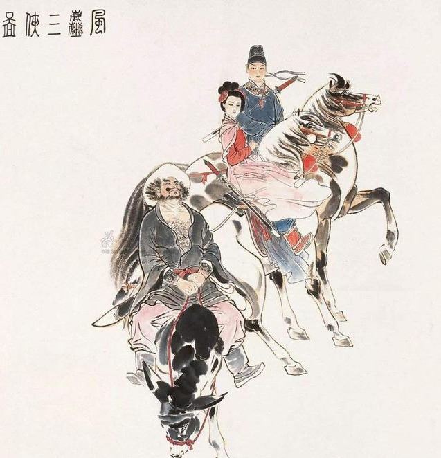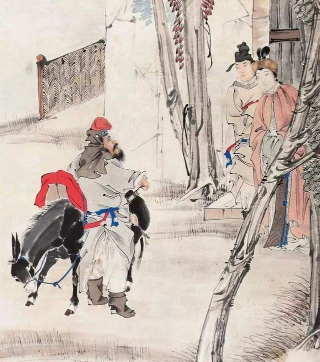 说完,虬髯客带着妻子一身戎装打扮骑马而去。