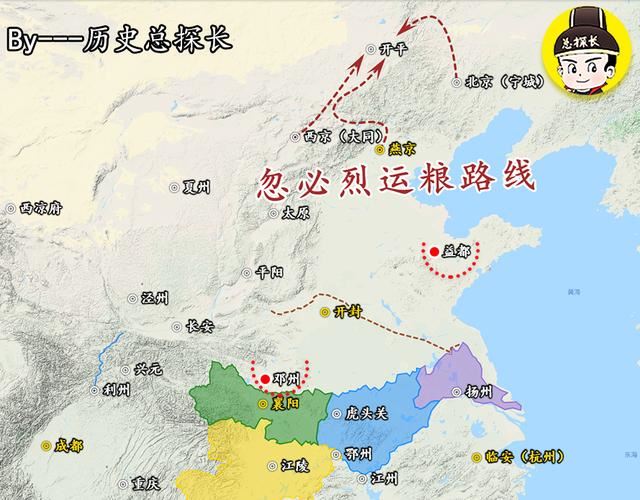 燕京、西京、北京运米十万石至漠南开平前线益都、邓州建立军事据点,防御扬州、襄阳两地势力威胁