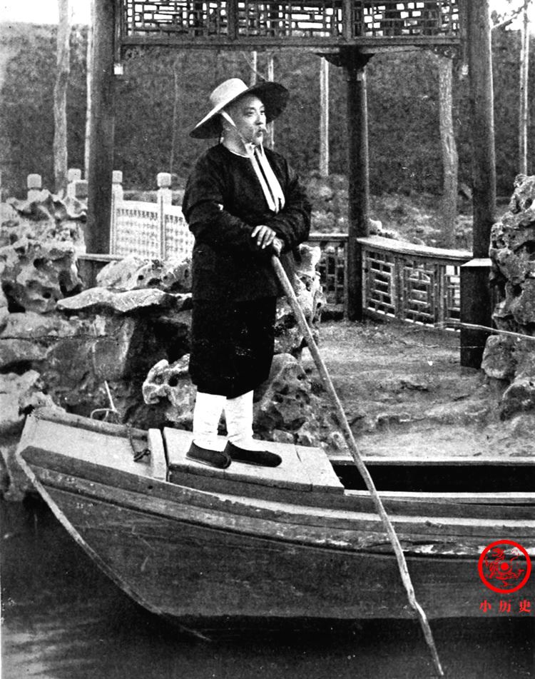 原创晚清老照片:妇女脱鞋展示三寸金莲,袁世凯在豪华庭院装扮渔夫