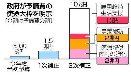 其实,之所以安倍设定10兆日元巨额预备费用引起众人的质疑,很大程度还在于第二轮补充预算中本身就已经有很大一部分用作抗疫。