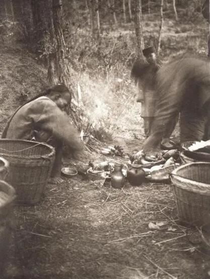 上图_ 清末时期,新年前夕的土地神祭祀.祭品有烤鸡,酒,油,茶,糕点等