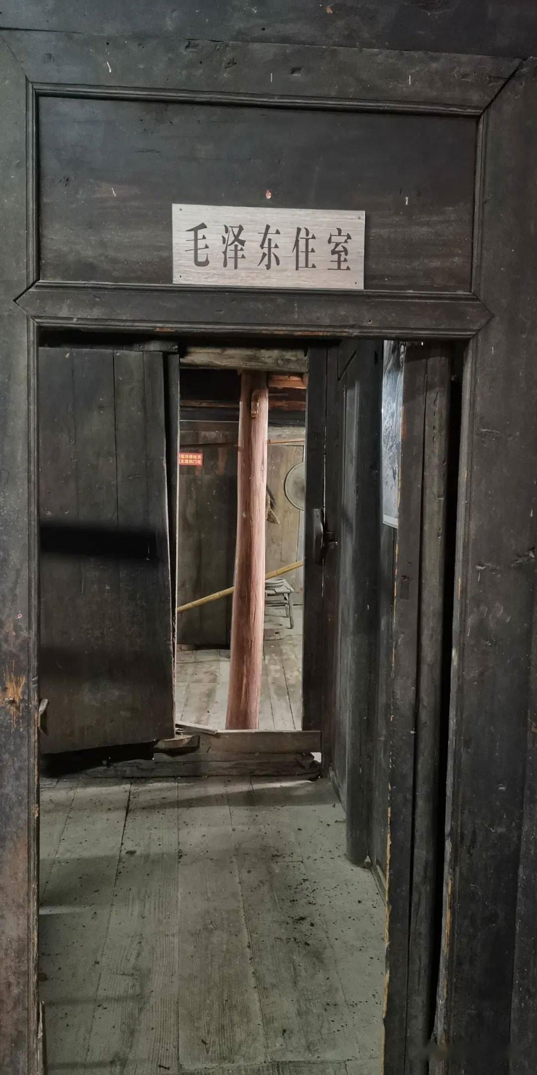 柱子下部的泥墙就是当年与邻居相接的部位。听了石定录的讲解,我再一次走进毛主席住过的房间仔细观看,感觉不一样。