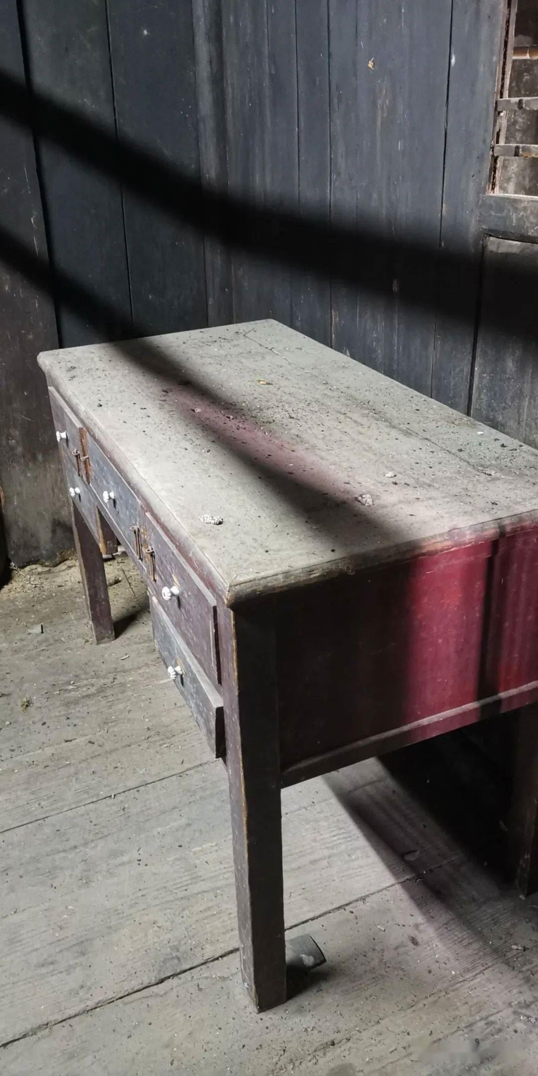 抽屉上的拉手是陶瓷做的,很精致。石定录父亲在当年还是有点铜板的。