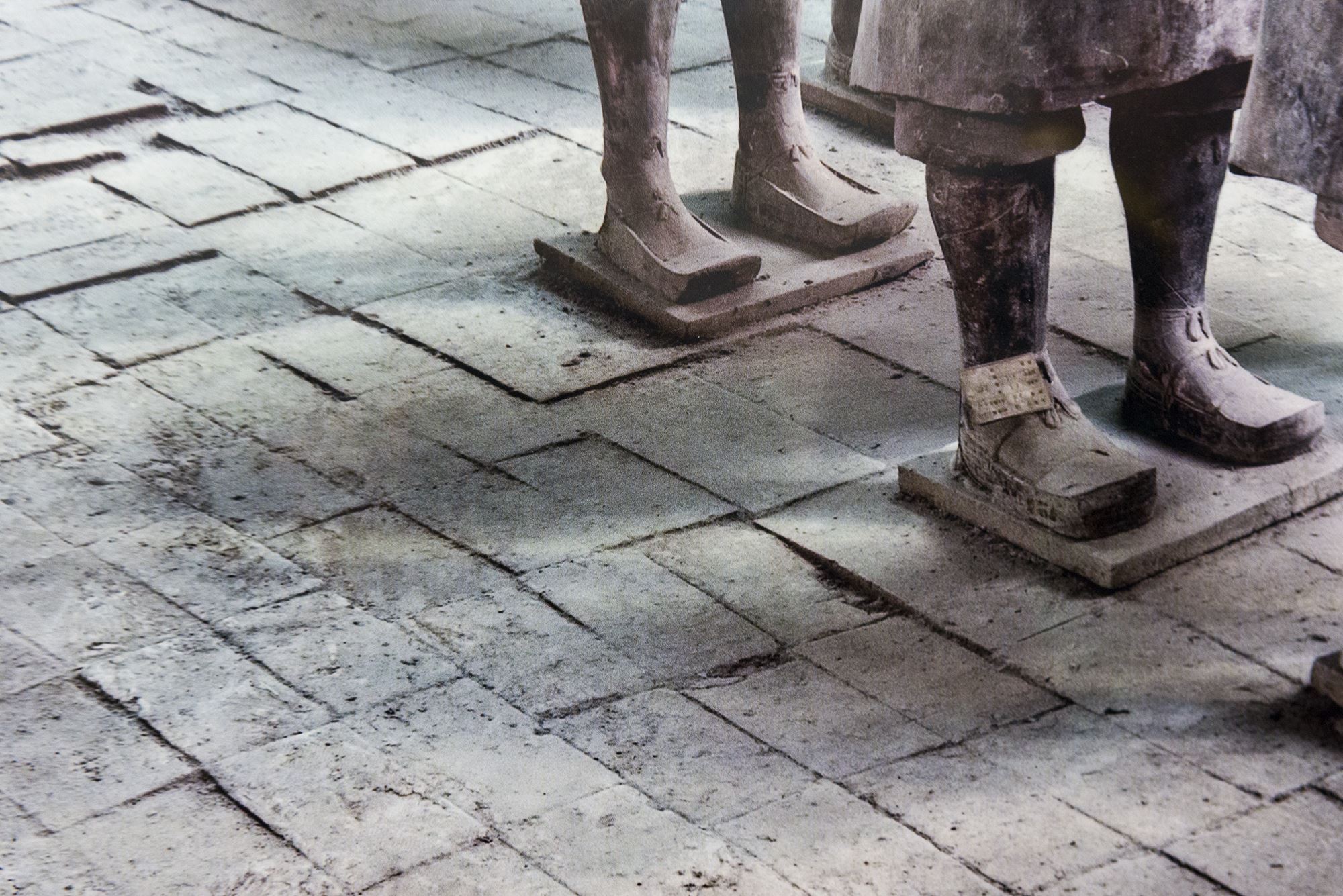 原因非常简单。因为这些土都是被炒熟过的,熟土不可能存活任何植物。兵马俑的这些秦俑都由黄土塑制,经过入窑烧制,再经表面彩绘,最终形成了千军万马。兵马俑的脚底全都踩着秦砖,平整不错缝,堪称奇迹。