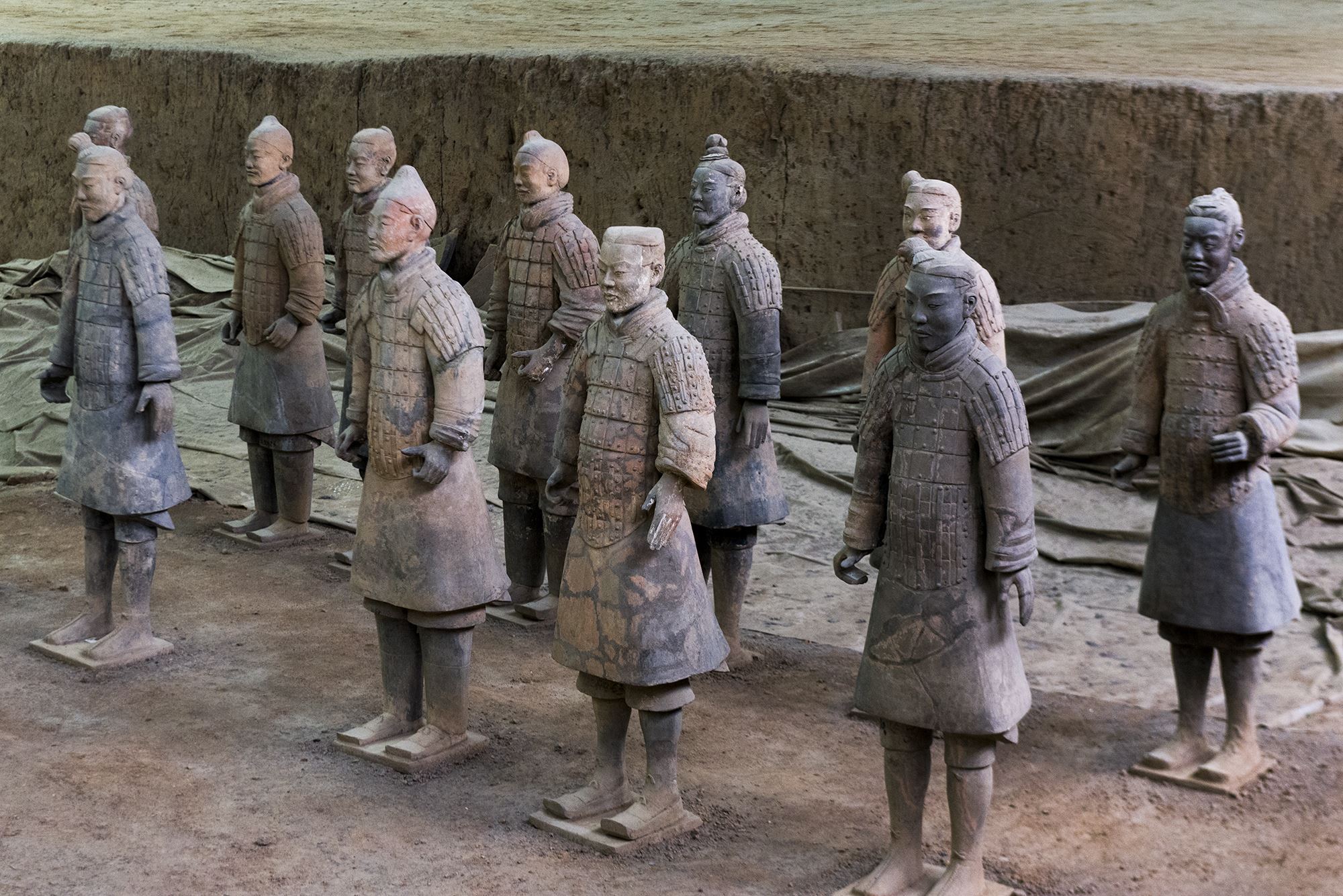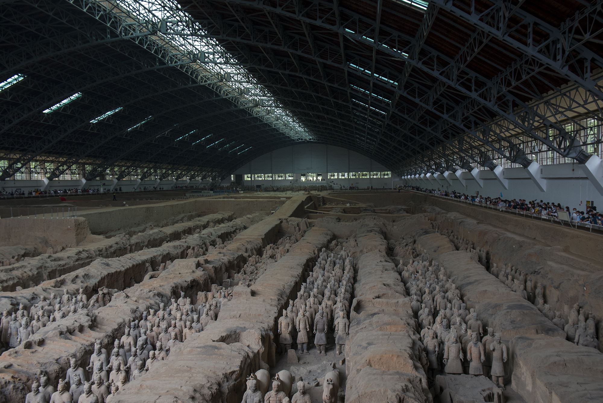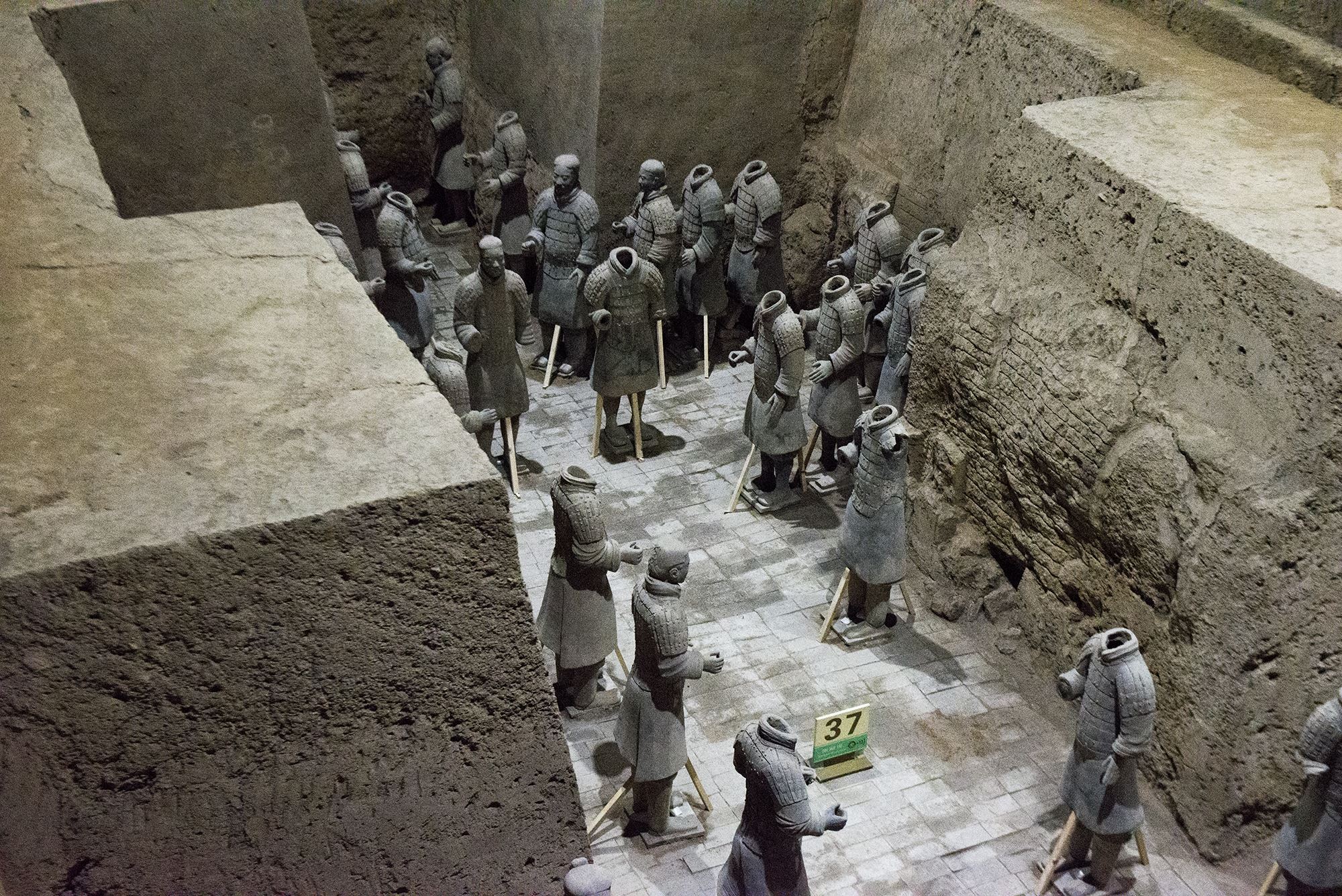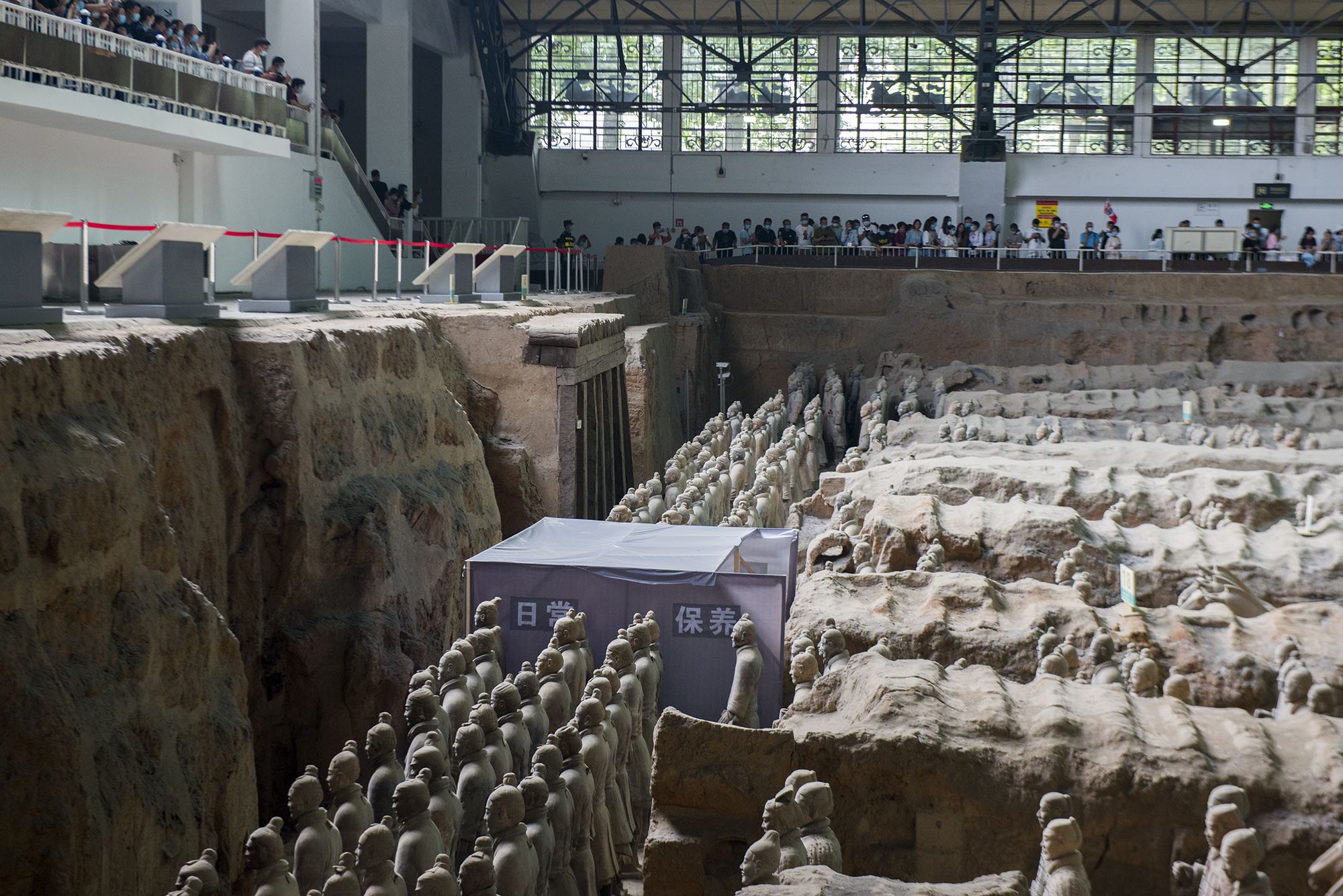 兵马俑实际上本来都是彩绘的,但接触到空气之后,便慢慢氧化脱落。听同伴说,1990年左右的时候,她来兵马俑参观,那时候的兵马俑还是有颜色的,当年参观兵马俑禁止拍照,因为镜头的闪光灯会加速兵马俑的氧化。为了尽可能的保留和保护兵马俑的原貌,还原历史,未来,说不定只能隔着真空玻璃看兵马俑了。