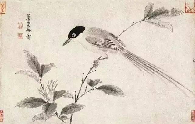 没错,就是徽宗的这件《写生珍禽图》令小编爱到不行,话说这件作品是徽宗写生花鸟画的典范,笔调朴质简逸,全用水墨,对景写生,无论禽鸟、花草均形神兼备。画卷共分事十二段,每段接缝处有宋徽宗的双螭印,共十一方。图中鸟之羽毛,用淡墨轻擦出形,又以较浓墨覆染,再以浓墨点染重点的头尾、羽梢等部位,层叠描绘,反映鸟羽松软的质感、丰富的厚度以及斑斓的色彩。枝叶的画法也是类似。尤其竹叶的画法与史籍记载完全一致。《写生珍禽图》亦有精彩之处,如第十一段“原上和鸣”的回首顾盼,第五段“碧玉双栖”的动静对比,以及第二段“熏风鸟语”的凝神引颈,皆生动写实。