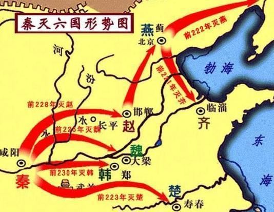 始皇帝十六年(前231年),魏国被迫把部分土地献秦,韩国亦被迫把南阳地献给了秦。秦派内史腾做南阳假守。始皇帝十七年(前230年),秦派内史腾攻韩,俘虏了韩王安,于韩地建置颍川郡,韩国灭亡。自公元前230年消灭韩国开始,秦始皇嬴政开始消灭山东六国的战役。在韩国之后,魏国、赵国、楚国、燕国、齐国等诸侯国,都被秦国一一消灭。于是,在公元前221年的时候,秦王嬴政正式变成了秦始皇,成为中国古代历史上第一位皇帝。