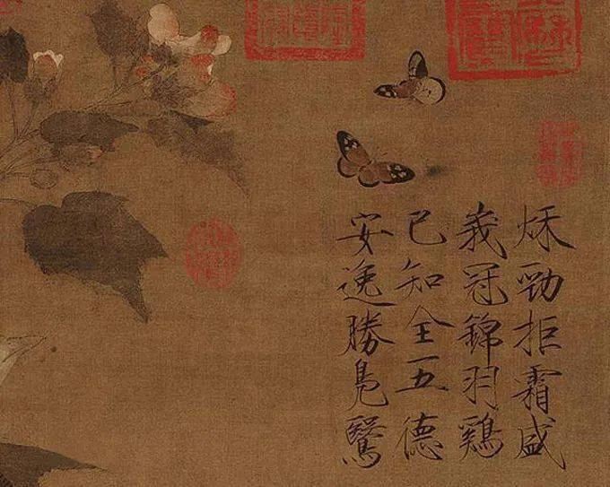 后来到了明代的花鸟,很少有这种东西,因为他不是完全自由地画画,他画画要讨好别人,要讨好皇帝,讨好什么人,就为了证明他认真。宋徽宗不用这样干。而且他有些画,我觉得有可能人家画得比较好的,他写上了他的名字,占为己有。