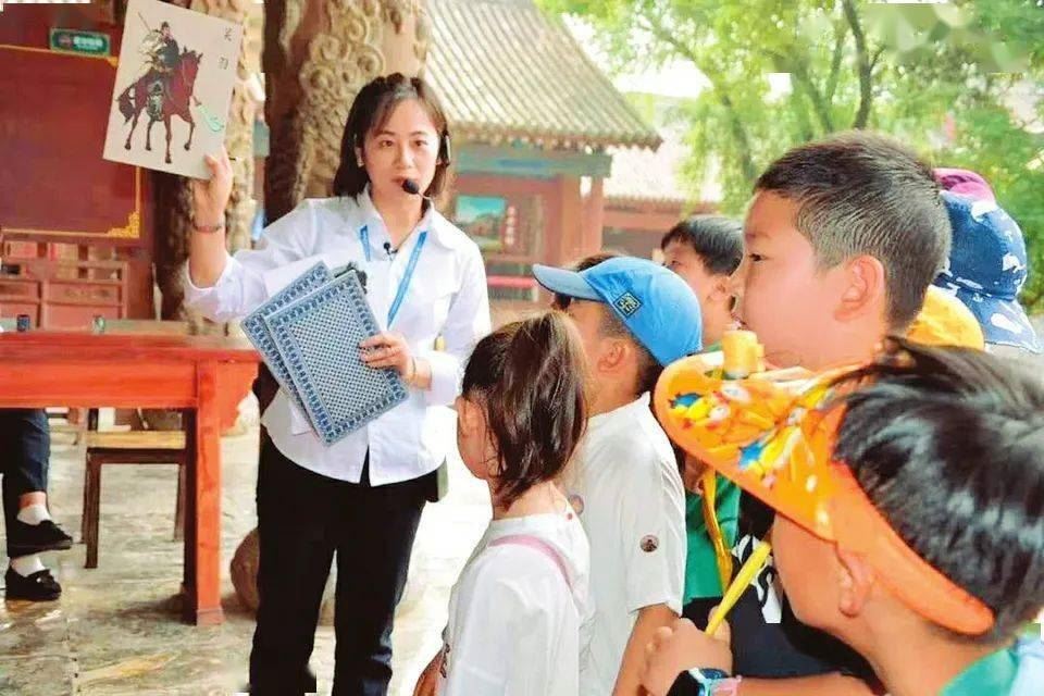9月12日,讲解员正在向小朋友们介绍解州关帝庙历史。李成晋摄