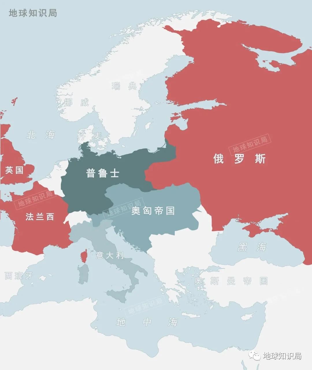 从普鲁士王国发展而来,由霍亨索伦家族统治的德意志帝国,几乎是一个纯德语国家,战后割让的仅仅是不多的边缘领土和人口;而南方的奥匈帝国,则由于多民族属性,在民族自决的原则下惨遭肢解。