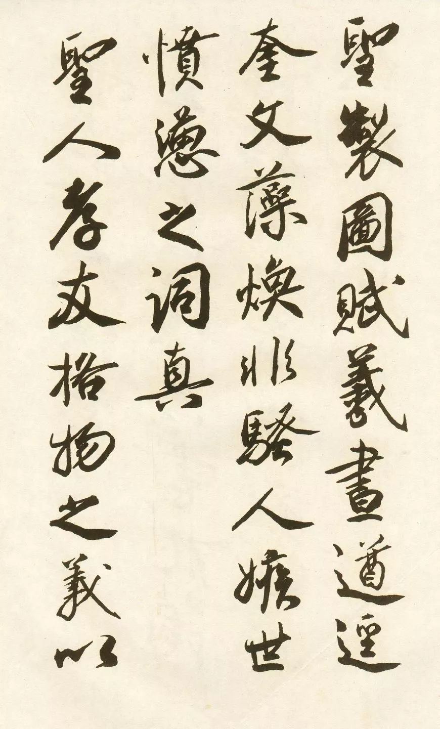 释文:臣闻唐有天下。不能追法先王。其政之所施。与士之所学。皆同乎流俗。合乎污世。其文鄙朴。无复风雅。开元中叶。号为极治。而遗风余烈。无可稽考。世称明皇脊令颂。最为翰墨文章之美。伏蒙宣示真蹟。其书札词语。始知臣前言不诬。臣伏观前日圣製图赋。羲昼(昼应作画)遒逕。(逕应作劲)奎文藻焕。非骚人嫉世愤懑之词。真圣人孝友格物之义。以彼方此。以今观昔。其事则同。其德其言则异。犹日月之揭。霄壤之殊。非臣敢私也。政和五年四月望。太师鲁国公蔡京谨题。