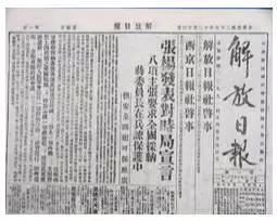 19、下图是1936年12月13日《解放日报》的一篇新闻报道示意图,从中可以获取的重要历史信息是( )
