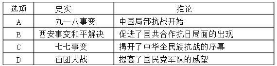 C.百团大战 D.西安事变的和平解决