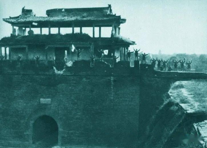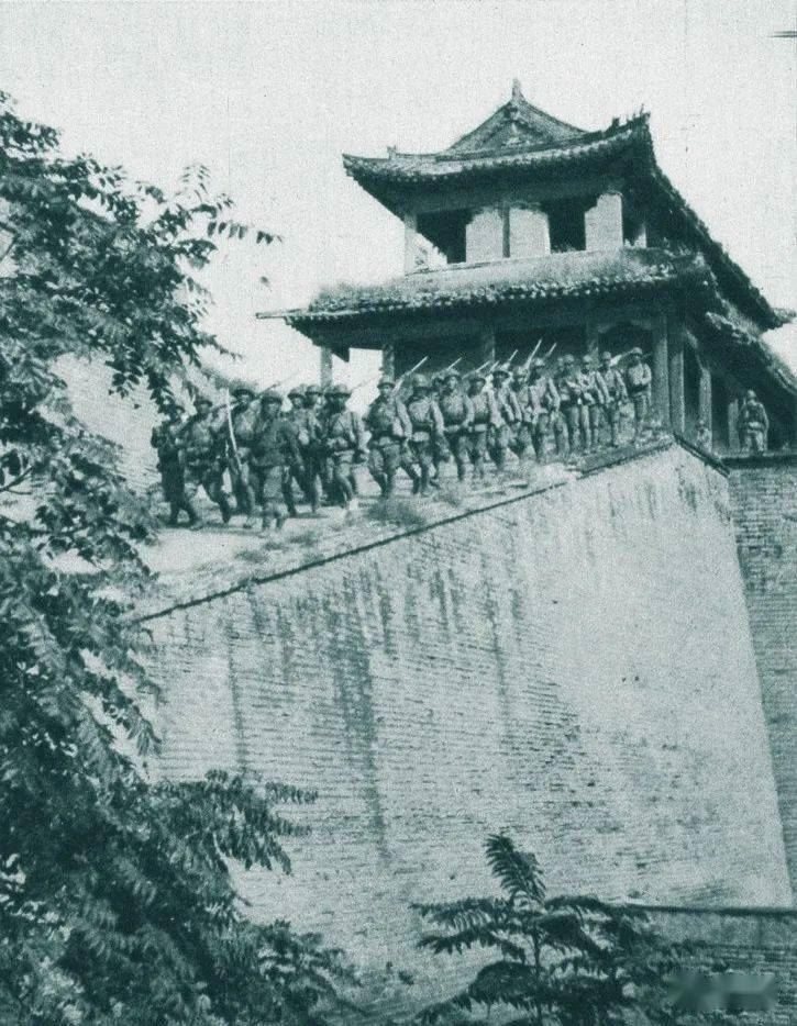 (10月9日,日军攻占河北正定城,北门城楼上的日寇士兵)