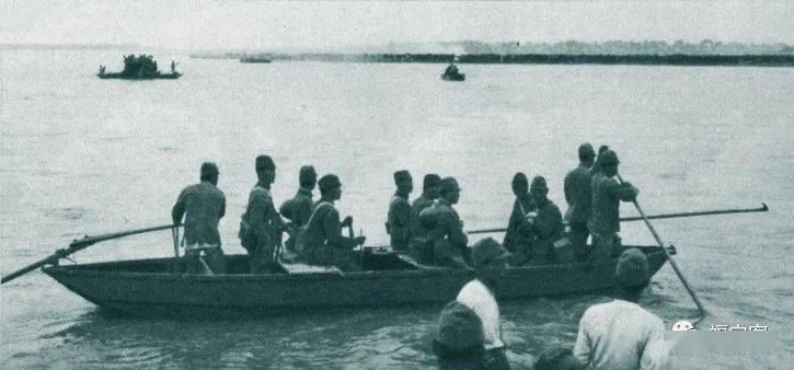 (10月10日,河北正定,滹沱河上渡河的日寇军官。)