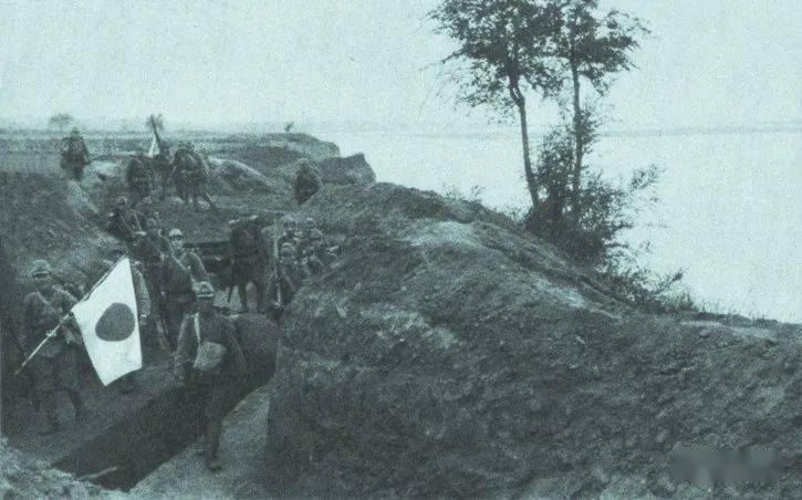 (10月10日,河北正定,占领滹沱河岸边战壕的日寇部队)