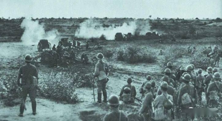 (1937年10月6日,朝河北正定逼近的日寇炮兵部队。)