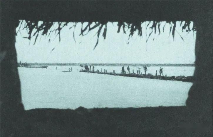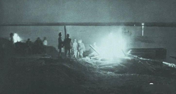 (10月11日,河北正定,滹沱河边连夜架桥的日寇。)