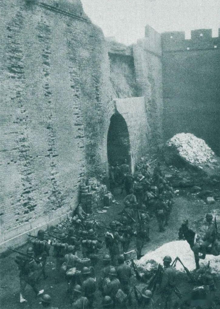 (10月9日,日军攻占河北正定城,西门入城的日寇部队)