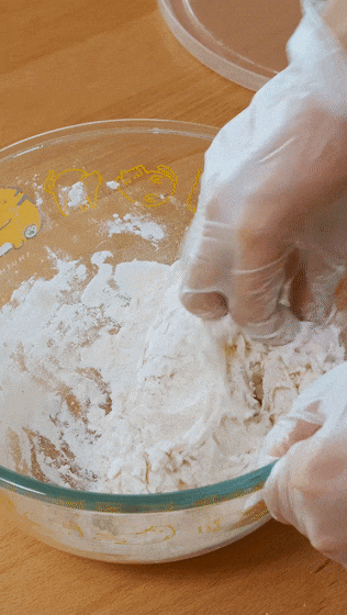 和好的面团软硬适中,不像发酵还需要一定的温度和时间,这个面团我们只要醒到半小时以上就可以了。如果你是提前一晚上做,也能放冰箱里醒发,第二天再接着包。