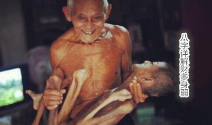 在八字中,有“财多身弱,富屋贫人”之说,意即财星寓意劳动或劳务,日主寓意一个人的身体,财多身弱的人,犹如一个人身体羸弱,却要承受太多的劳务,自然不能承受其苦。