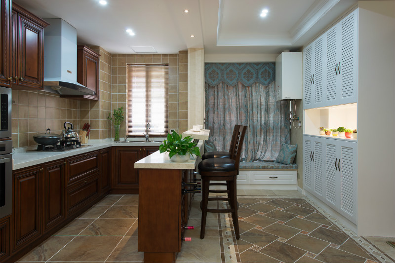 三、厨房宜采用抽油烟机为主、换气扇为辅的排列设备。这种排味通风换气方式,首先应在炉灶之上安装抽油烟机。同时,在棚顶或窗上安装换气扇,协助换气,以便把油烟尽快排除到窗外,保持厨房的清洁干爽。