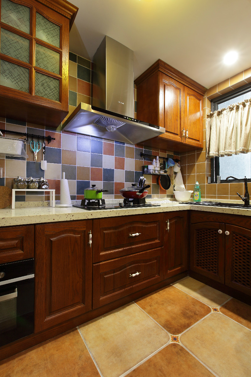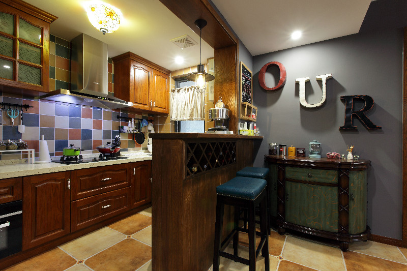 厨房的墙壁应选择方便清洁、不易沾上油污的墙材,还要具有耐火、抗热变形等功能。厨房油烟甚大,尤其是中国人喜欢煎炒,讲究“火候炉气”,以致厨房的油烟污渍难以清除。所以,四面墙壁的表层材质要有很好的抗油渍、抗油烟的能力,以便能较长时间地保持表面洁净。