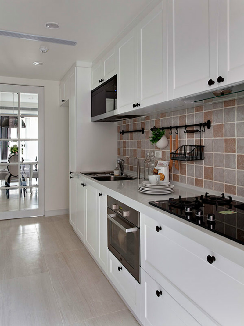1.厨房是做饭的地方,白色至少可以表明,这样的卫生状况良好,一尘不染,饮食大可以放心。厨房位置不可以选在密闭式的空间,一定要有开设直接对外的通口,以排出烹煮时厨房内所产生的有害气体;