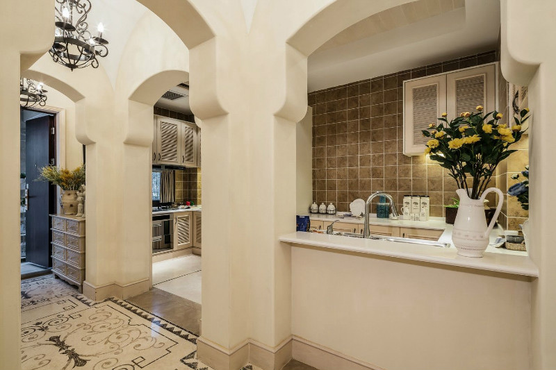 5、厨房的地面不可高过厅、房等地面,这一方面是可以防止污水倒流;其次是由于主次有别,厨房不可凌驾于厅、房之上;再次,从厨房入厅奉食,应步步高升,反之则有退财之虞。