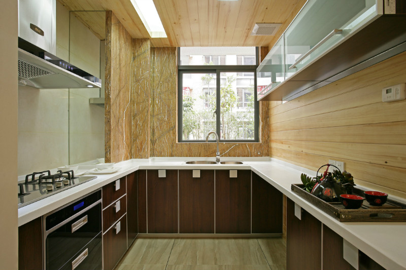 厨房的地台不能高于其它房间的地台,这一方面是可以防止污水倒流;其次是由于主次有别,厨房不可凌驾于厅、房之上;再次,从厨房入厅奉食,应步步高升,反之则有退财之虞。若要如此设计,也要在厨房的门上加一道门槛。