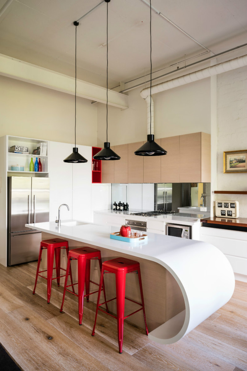 风水大师认为,厨房以白色为佳。白色,代表纯洁、平静,走进厨房,释放一切不好的情绪,更加利于食欲促进。特别是厨房中的橱柜台面以白色或者亮色为佳。