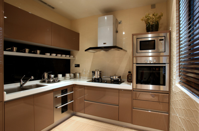 厨房为制作饮食的处所,在厨房不宜使用过于沉重或显脏的颜色。冷暖色对比,各显神通,首先厨房忌讳黑暗等一些冷色调,黑色、蓝色为水气之色,有克炉灶之火的说法,易导致房主财运不旺。淡而明亮的颜色,如白色、黄色等,合理的运用,会让狭小的厨房变得更加宽敞,更显温馨和亲切感。色相偏暖的色彩,使厨房空气氛显得活拨,热情,可增强食欲。
