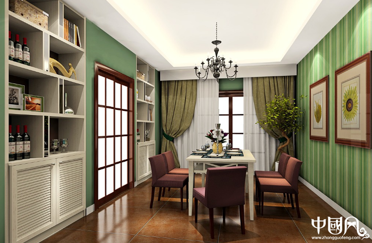 将餐厅布置成阴阳平衡,但略偏阳的空间。为了增加阳气,祖先画像或古董家俱等属阴的物品最好不要摆在餐厅。阴气太重有害家运。另一方面,阳气过盛又会造成家庭失和。