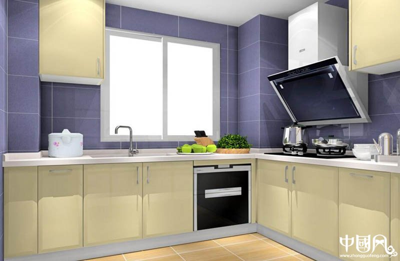 朝西的厨房适合浅淡而明亮的中性色调色彩,使狭小的厨房显得宽敞;纯度低的色彩,使厨房温馨,亲切,和谐;色相偏暖的色彩,使厨房空气氛显厨房空间气氛显得活拨,热情,可增强食欲。