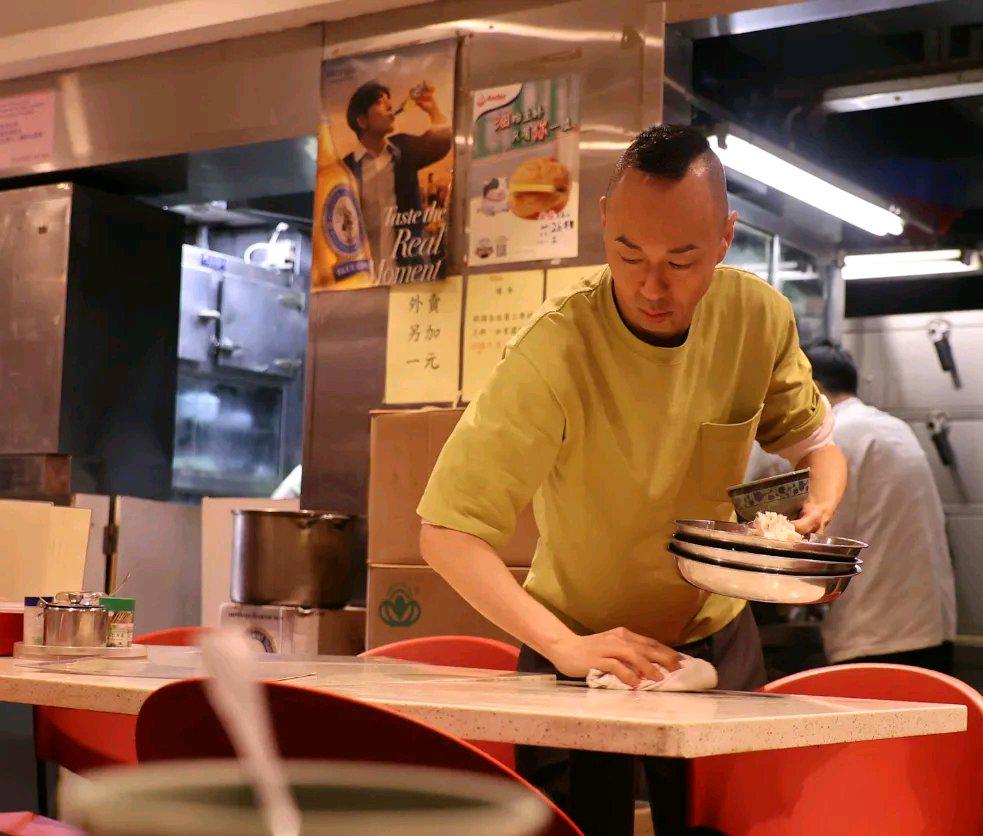 上个月他参演的电视剧《巾帼英雄之悬崖》开播,还能看到他频繁参加电视剧活动,没想到如今却沦落到了餐厅打工。
