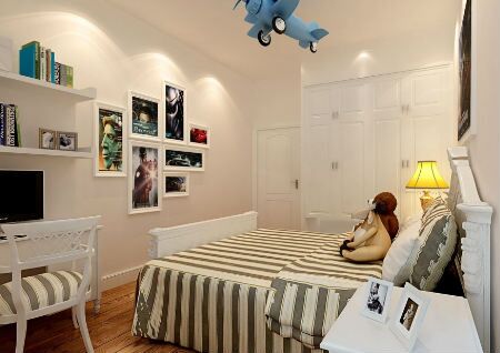 儿童卧室的布置应迎合孩子的喜好,整体气氛应欢快、简洁一些。不可装饰的有压抑和刺眼的感觉,否则会令孩子情绪变化大,并且妨碍孩子的正常休息。