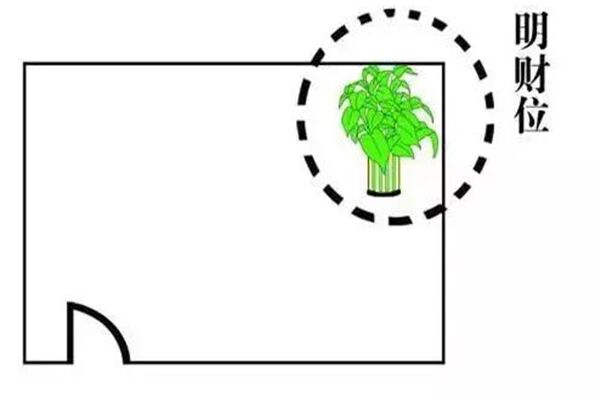 客厅明财位,在客厅的对角线上,比如,客厅的大门在住宅的左边,那么,明财位就在客厅开门的右边的对角线顶端。