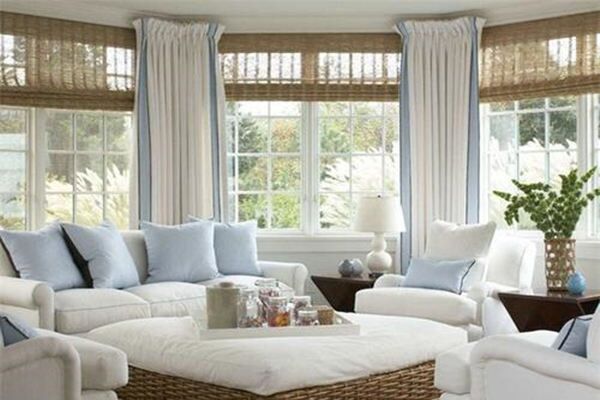 可以将横梁结构处装饰成各类美丽的造型。如传统式拱门,天花板的延伸、绘花等,也可干脆分成两个区域。