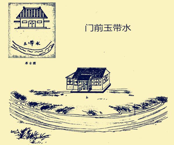 水从宅前弯抱而过,主大吉。书云:“束带水缠身,家中好积金。若然为家墓,久后可成名。”