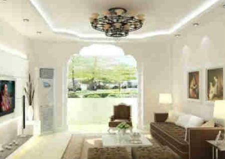 室内一定要给人明亮感觉,所以客厅的灯光要充足,暗淡会影响事业发展。客厅天花板的灯具选择很重要,最好是用圆形的吊灯或吸顶灯,因为圆形有处事圆满的寓意。有些缺乏阳光照射的客厅,室内昏暗不明,久处其中容易情绪低落。这种情况最好是在天花板的四边木槽中暗藏日光灯来加以补光,这样的光线从天花板折射出来,柔和而不刺眼。而日光灯所发出的光线最接近太阳光,对于缺乏天然光的客厅最为适宜。