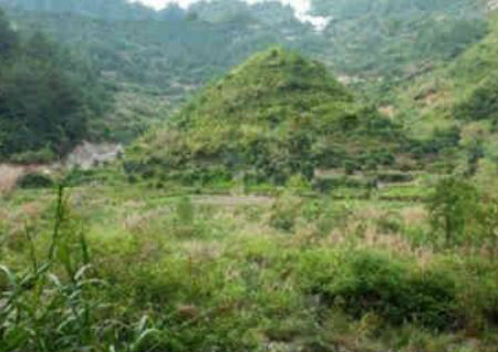 (3)、后靠山不齐,一方砂高一方砂低,高矮不齐,也会出现寿数长短不齐,诗曰:案山一般齐,男女登仙地。