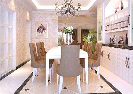 家庭的能量部分来自于进餐的食物。由于餐厅是进食的区域,所以跟家庭的财富大有关系。餐厅应采用亮色的装潢和明亮的照明,以增加火行的能量,蓄积阳气。在此处放置植物更可增强阳气和财富。